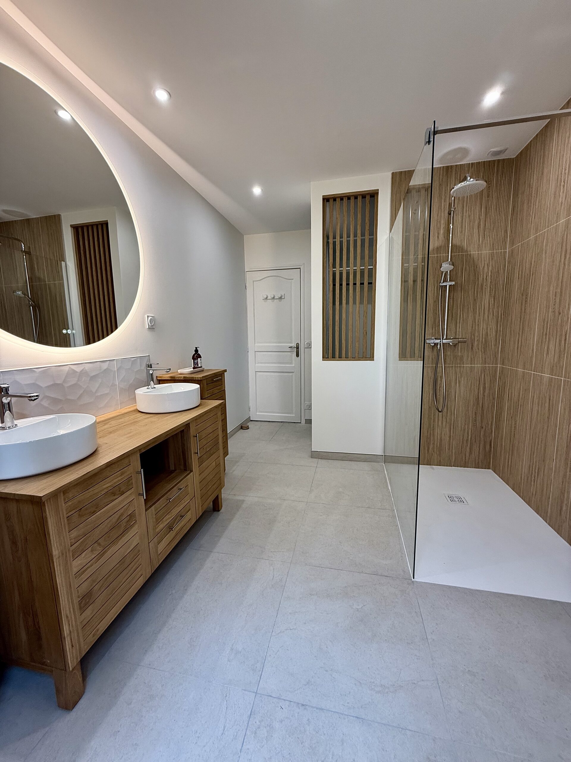 De la conception à la réalisation, nous vous accompagnons à chaque étape pour donner vie à vos idées. Notre expertise couvre l’ensemble des corps de métier: maçonnerie, charpente, plâtrerie, isolation, plomberie, électricité, VMC, menuiserie, revêtement de sol, carrelage, peinture.